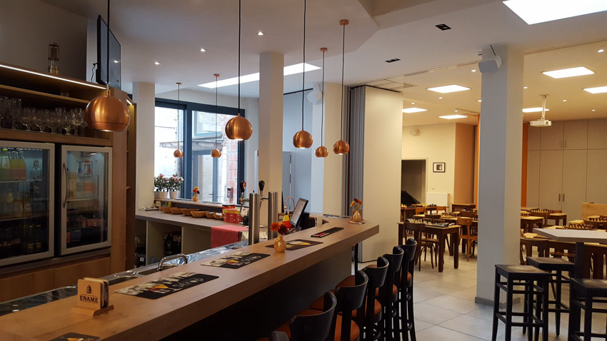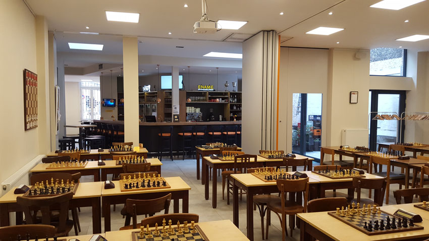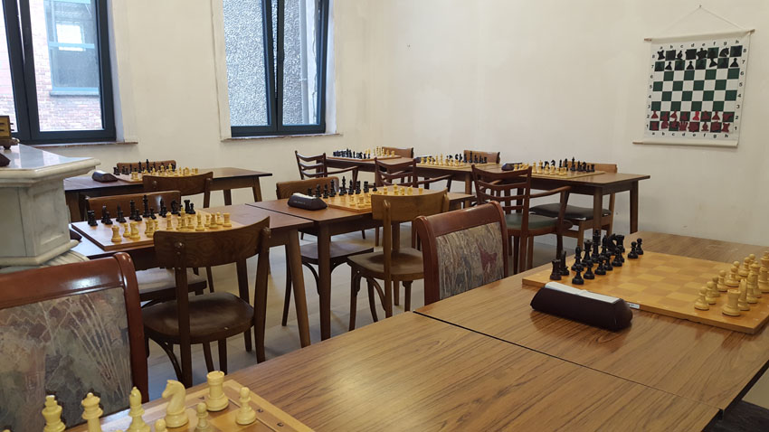 Schaakhuis Caïssa beschikt over multifunctionele en moduleerbare zalen (tot 100 personen) op het gelijkvloers met een afscheidbare bar en keuken voorzien van een tapinstallatie, doorgeeffrigo, espressomachine, vaatwas, ijskast, kookplaten enz...