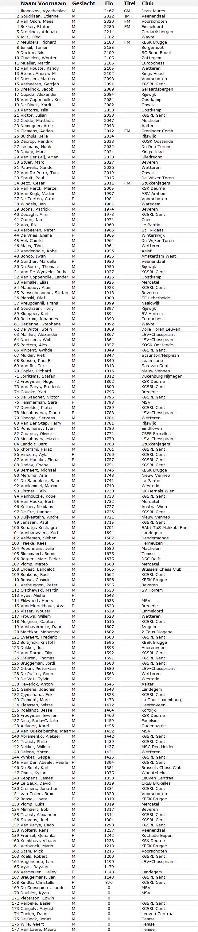 sep 2023 - maa 2024: Ligakampioenschap OVL < 1800