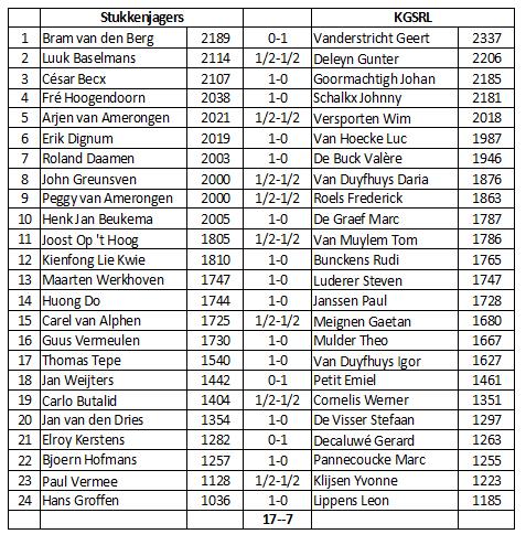 Volgend jaar komen de Stukkenjagers ons bezoeken en dan wil ik toch dat een aantal sterke KGSRL-spelers deelnemen zodat we geen derde nederlaag op rij moeten slikken!