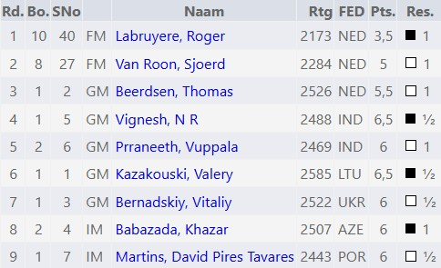 Daarnaast namen ook Abramenko Aleksei (2,5/7), Alparslan Koekten (3/7) en Paul Uylenbroeck (1,5/7) deel. Hun inzet en doorzettingsvermogen verdienen een groot compliment.